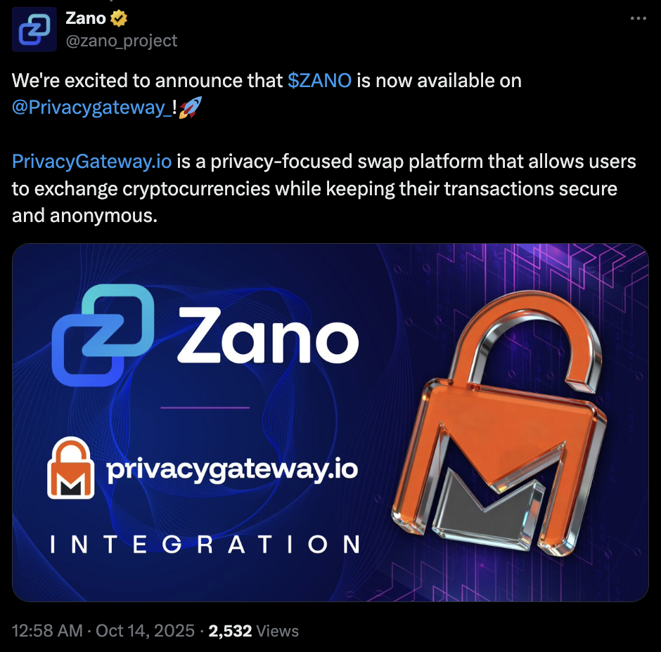 We're excited to announce that $ZANO is now available on @Privacygateway_!🚀https://t.co/u9oEDGRSoi is a privacy-focused swap platform that allows users to exchange cryptocurrencies while keeping their transactions secure and anonymous. pic.twitter.com/JseqhzN8Pl