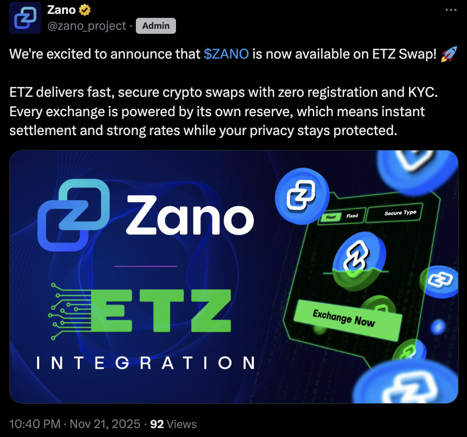 ETZ delivers fast, secure crypto swaps with zero registration and KYC. Every exchange is powered by its own reserve, which means instant settlement and strong rates while your privacy stays protected. pic.twitter.com/y9ACxLmAlm