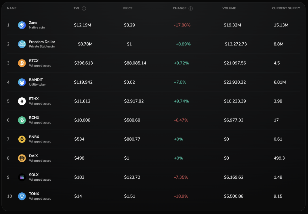 ZanoStats Total Value Locked – January 27th, 2026