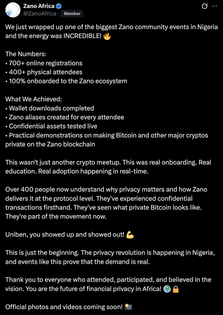 We just wrapped up one of the biggest Zano community events in Nigeria and the energy was INCREDIBLE! π₯